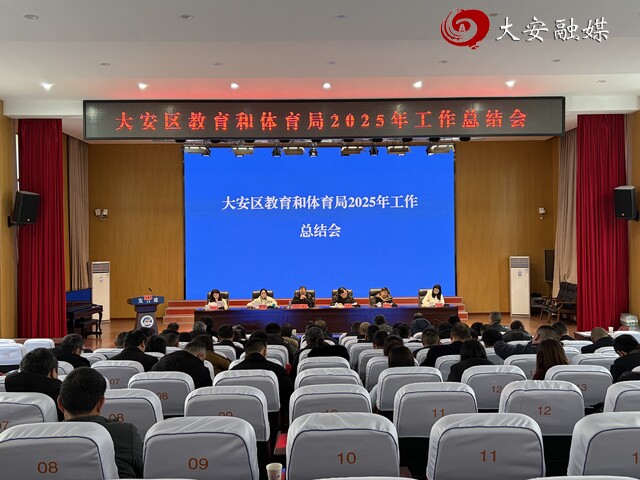 1月30日,大安区教育和体育局在广华山小学学术报告厅召开2025年工作总结暨2026年全区教育工作会。会议听取2025年全区教育体育工作全面报告,传达学习省市区委相关会议精神,部分基层党组织书记作抓党建工作述职和述责述廉。各中小学校校级干部、直属事业单位主要负责人及局机关中层以上干部参加会议。